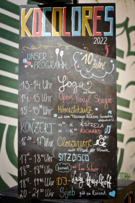 Seit vielen Jahren verwandelt sich der Brühler Garten, in der Innenstadt Erfurts, für einen Tag im Sommer in einen Ort der Kultur und des Frohsinns. Das kocolores ist ein nicht-kommerzielles, öffentlich zugängliches Familien- und Kulturfest. Seit 2012 wird durch ausgezeichnete (inter-)nationale Musik, ausgefallene Kinderbespaßung, Theater, Kleinkunst und vieles mehr ein ausgewogenes Programm für Jung und Alt präsentiert.